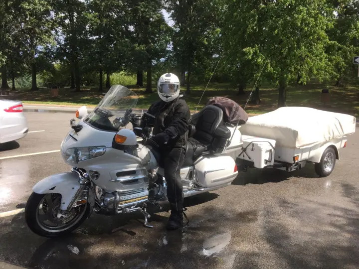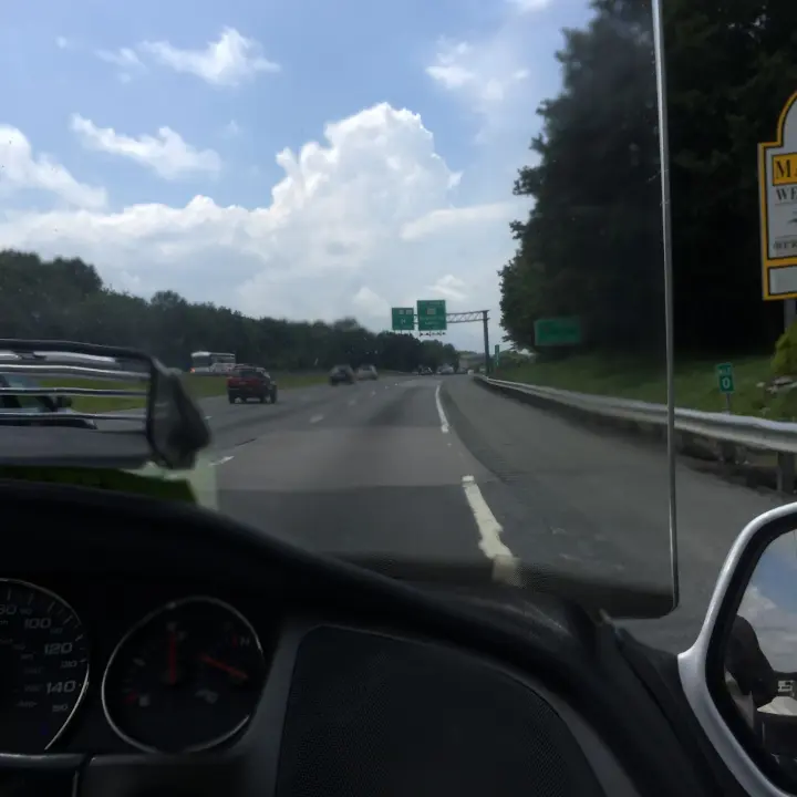 The good part was the rain slowed the pace considerably, which worked in my favor. First, the slower pace is less stressful when riding in a metropolitan area alongside lots and lots of tractor trailers. And a second benefit to that slower pace is that it makes it easier to see (keep in mind that a Gold Wing does not have a windshield wiper).
